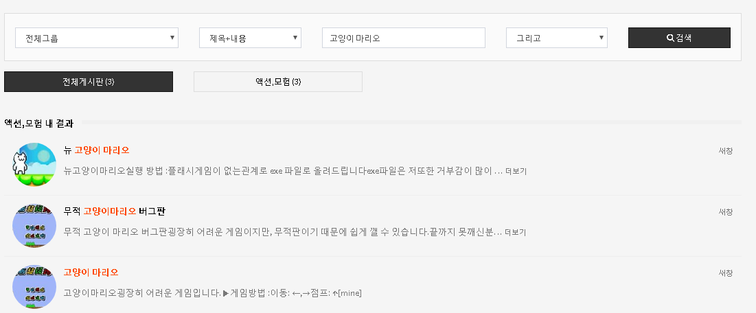 아무래도 구버전의 게임이나 무적판의 고양이 마리오 게임하기를 하고 싶다면 키즈짱24홈페이지를 통하시면 됩니다. 이곳에 검색하시면 해당 버전을 찾으실 수 있네요.