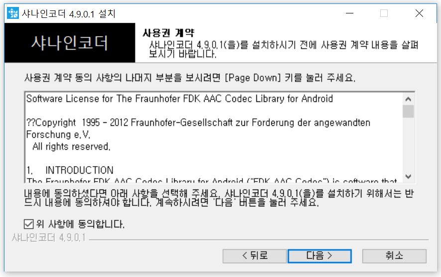 샤나인코더 다운로드파일을 받으신 후에 설치를 진행하는 과정은 단순한데요. 설치마법사에서는 가장 먼저 사용권 계약을 동의하신 후에 구성 요소 선택을 진행합니다. 구성요소에는 인코더 프로그램과 프리셋이 있는 것을 확인 가능해요.