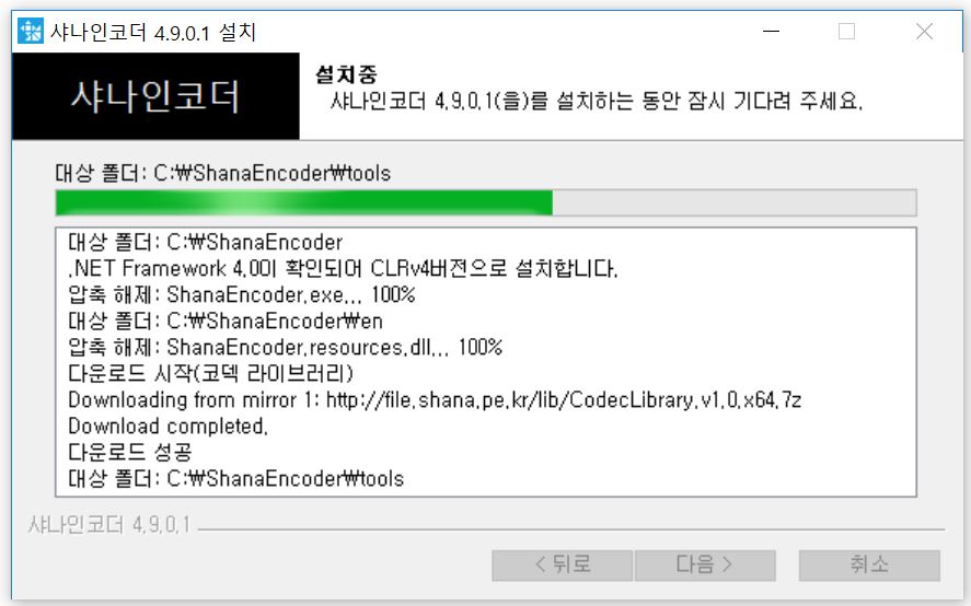 이제 인스톨이 진행될 폴더를 지정해두시면 해당위치에 동영상 인코덩 프로그램의 설치가 완료가 진행됩니다. 중간에 코덱들은 추가로 다운로드가 진행되는 것 같네요.