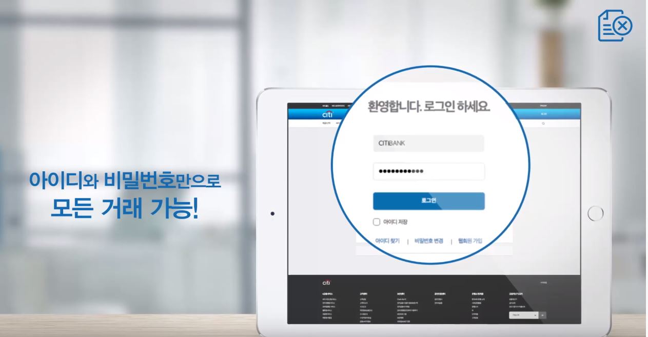 다른 은행권과는 달리 씨티은행 개인 인터넷뱅킹과 기업이 구분되어 있지 않다는 점이 특징인데요. 지점방문없이 간단하게 스마트폰으로 인증을 통해 가입하고 통장관리를 하실 수 있습니다.