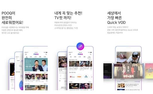 온라인방송스트리밍플랫폼으로 티비다시보기를 할 수 있는 다른 곳은 POOQ이란 곳도 있었는데요. 이 곳은 앞서 설명을 해드렸던 곳과는 다르게 한번에 공영방송사에서 방영중인 프로그램들을 한눈에 찾아볼 수가 있었습니다.