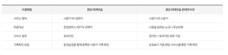 때문에 기존 버전과 달리 사용을 원하는 무상으로 다운로드 받거나 홈페이지에서 한컴타자연습 바로가기로 직접 연습을 할 수 있다는 점이 특징입니다. 아무래도 온라인을 통해 연동되기 때문에 자동 랭킹 서비스도 제공한다는 점도 큰 장점이네요.