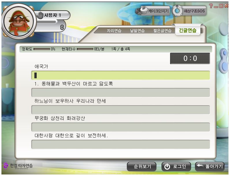 만약 로그인을 하셨다면 온라인으로 프로그램을 이용하여 타자연습 게임하기를 하실 수 있구요. 홈페이지를 통해 자신의 기록을 저장하여 랭킹을 확인 가능합니다. 개인적으로는 이러한 기능을 하지 않아서 혼자하기를 많이 하는 편이에요.