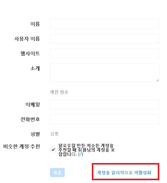 이렇게 인스타그램 탈퇴방법에 대해서 알아보았는데요. 만약 계정을 삭제하지 않고 당분간 이용을 하지 않는다면 다른 방법을 이용해 비활성화시켜놓을 수도 있습니다. 초기화면에서 프로필 편집을 선택해보시면 하단 부분에 비활성화 시킬 수 있는 곳이 있어 이를 통해 비활성화를 시켜주시면 되겠습니다.