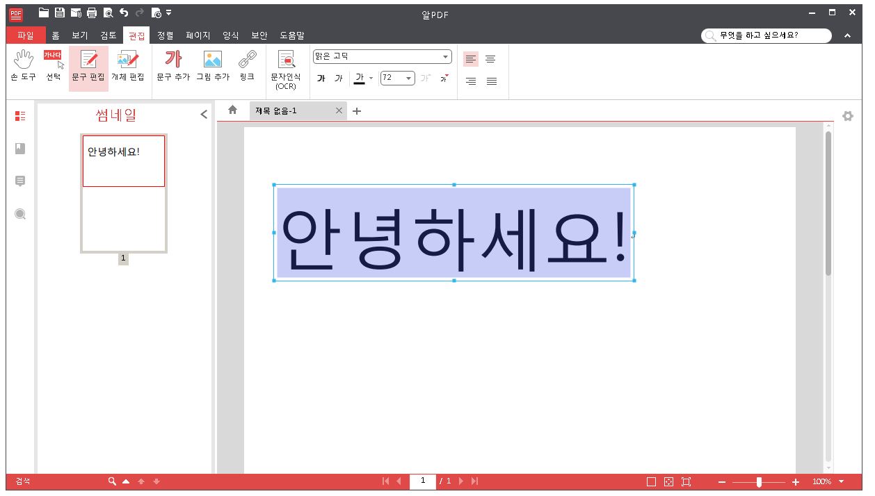 첫 번째로 pdf뷰어에서는 하지 못하는 파일 생성부터 알pdf 다운로드 무료툴로 진행해 보았습니다. 새로 만들기를 통해 파일이름을 정하고 새 pdf문서에 텍스트를 넣어서 저장을 하였습니다.