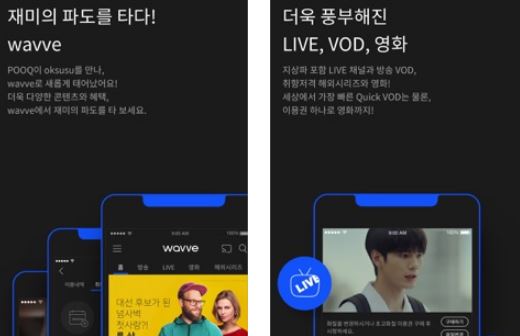모바일 같은 경우는 역시 홈페이지 내에서는 해결이 되지 않구요. 웨이브 애플리케이션을 따로 받아서 보셔야 합니다. 공식앱과 마찬가지로 스토어에서 받으신 후에 설치하시고 사용해보시면 되는데요.