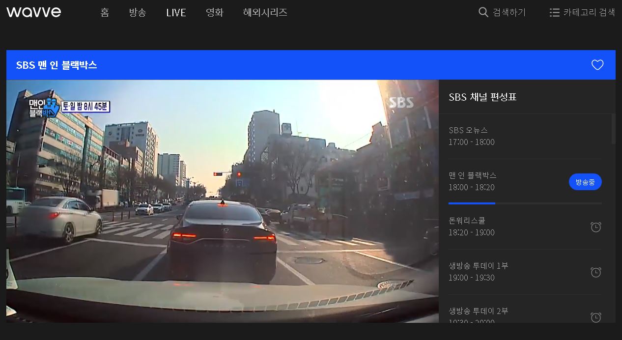 이외에도 지상파 방송을 온라인에서 제공하는 곳인 wavve를 통해서도 에스비에스 온에어를 보실 수 있는데요. wavve 홈페이지에서 LIVE방송을 보시면 sbs가 있고 이를 통해서 시청이 가능합니다.