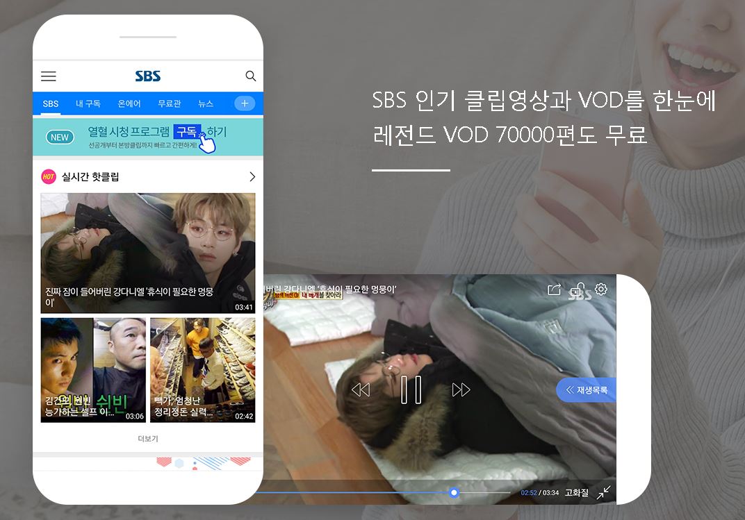 역시 pc 홈페이지에서 서비스를 하는 것과 같은 콘텐츠를 모바일에서도 제공하며, sbs온에어 시청도 가능하니 스마트폰에서 보실 분들은 이용해보시는 것도 괜찮을 것 같습니다.