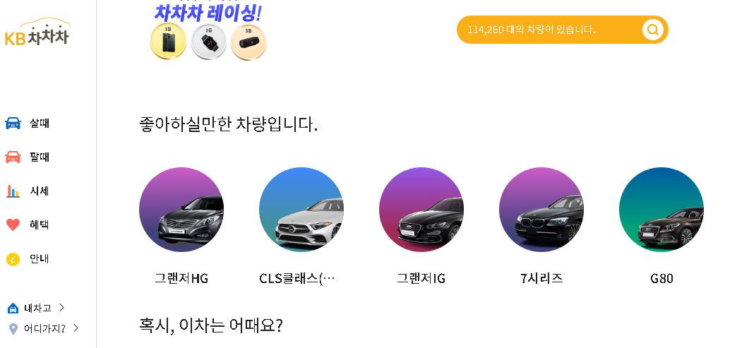 KB차차차도 역시 대표 중고 자동차매매사이트로써 중고차의 살때, 팔때 그리고 시세를 홈페이지와 모바일 어플을 통해서 확인하실 수 있게 서비스를 제공하구요. 허위매물을 줄어주는 시스템이 잘 갖춰져 있는 것 같습니다.