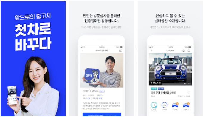 이외에 위에 소개된 곳들은 모바일에서도 따로 어플리케이션을 제공는데요. 그 반대로 중고 자동차매매사이트가 아닌 모바일 앱으로만 서비스가 되는 '첫차'도 있으니 참고하시길 바랍니다.