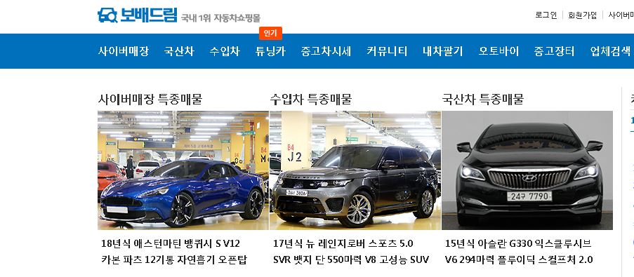 다음으로 보배드림 같은 경우는 중고차 인터넷 쇼핑몰로써 희귀한 제품이 많기로 유명한데요. 커뮤니티가 잘 발전된 곳이기 때문에 자세한 정보를 얻으시기에 유리한 곳입니다.