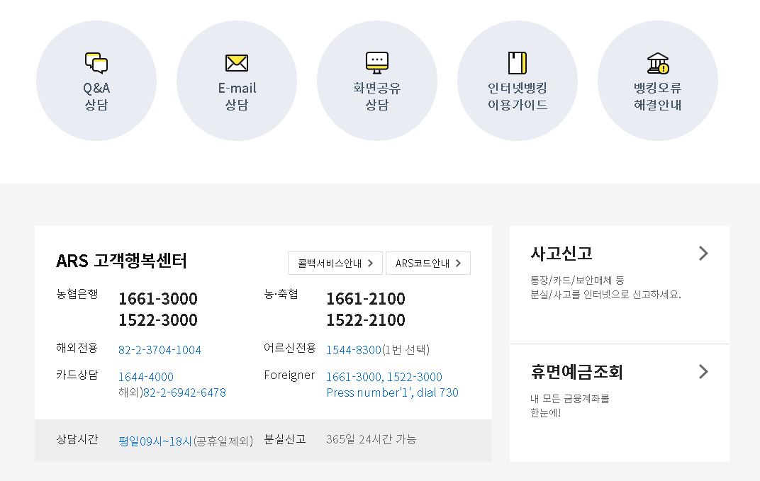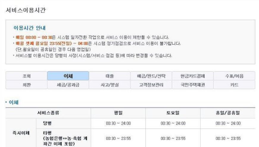 서비스의 이용시간은 사용목적에 따라서 조금씩 다른 농협 인터넷뱅킹인데요. 때문에 은행 홈페이지에서 제공하는 내용을 잘 확인하시구요. 추가로 문의사항이 있다면 ARS 전화상담을 이용하여 고객센터에 물어보세요.