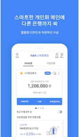 스마트폰에서의 거래는 최근에 전체 금융거래가 오픈뱅킹으로 한번에 진행되기 때문에 더욱 편리하게 다룰 수 있는데요. 주거래 은행을 기반으로 하여서 애플리케이션을 사용하시면 됩니다. 저는 농협인터넷뱅킹 은행을 주로 이용하네요.