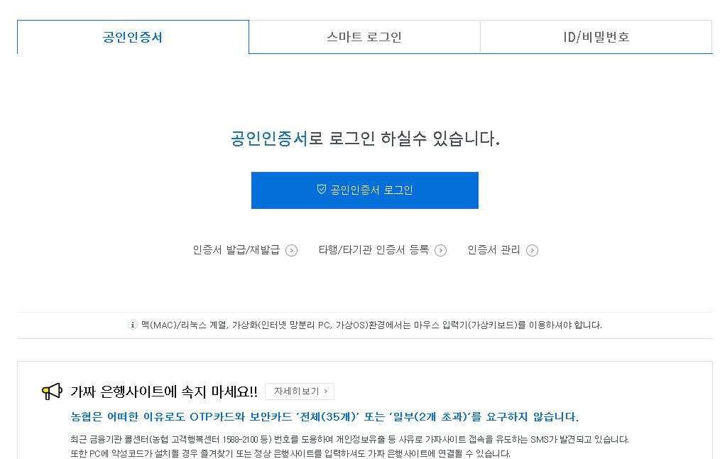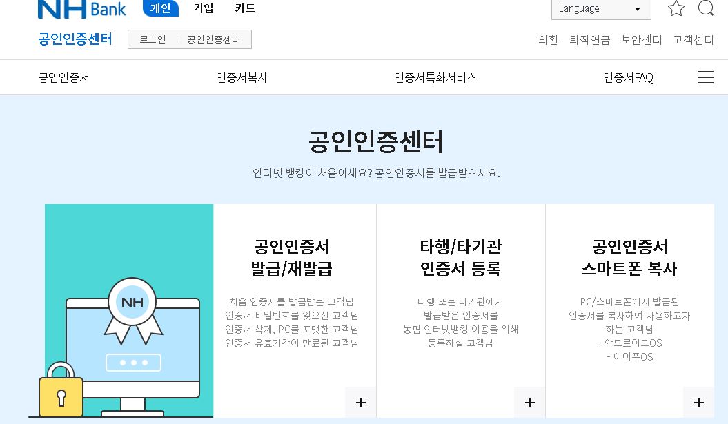 농협 인터넷뱅킹 가입을 오프라인 영업지점을 통해서 신청을 하셨다면 3일 이내에 공인인증서를 발급하셔야 한다고 하는데요. 공인인증서 같은 경우는 농협은행 인터넷뱅킹 공인인증센터를 이용하시면 쉽게 발급이 가능합니다.