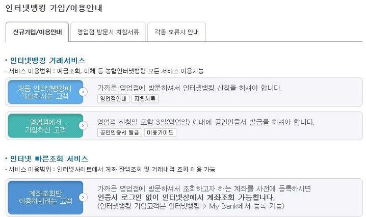 농협 인터넷뱅킹 은행 홈페이지 (banking.nonghyup.com)바로가기