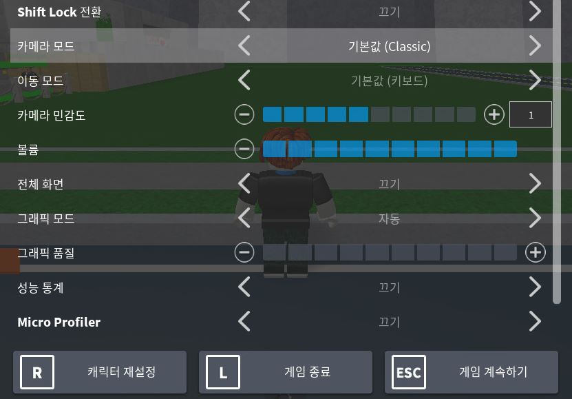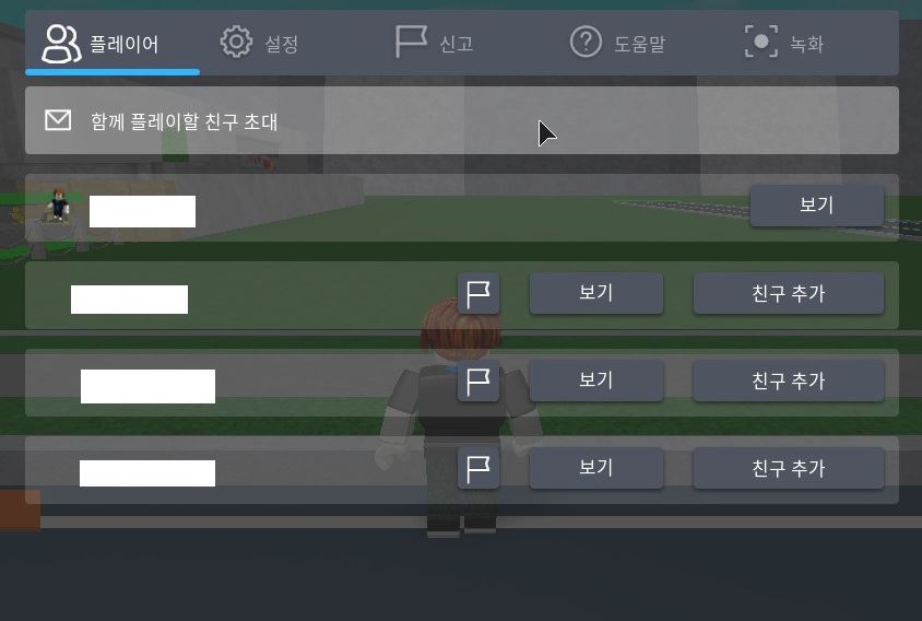 먼저 현재 서버에 들어와 있는 플레이어의 목록이 보였습니다. 그리고 나서 구체적인 세팅을 확인하기 위하여 설정에 들어가보시면 다양한 기능을 볼 수 있었네요. 더불어 로블록스 바로가기에 대한 도움말도 보였답니다.