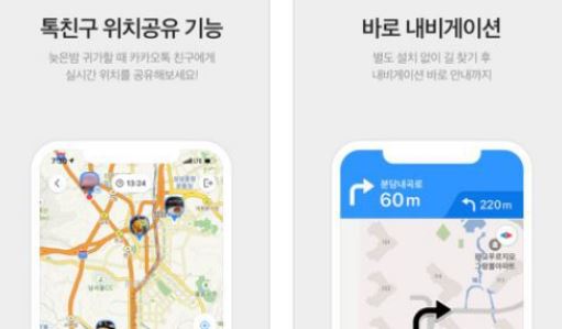 이런 daum 지도 같은 경우 모바일에서는 카카오맵 애플리케이션을 스토어에서 받으시면 되는데요. 모바일만의 기능인 내비, 위치 공유, 실시간알람을 통하여 스마트하게 이용을 하실 수 있습니다.