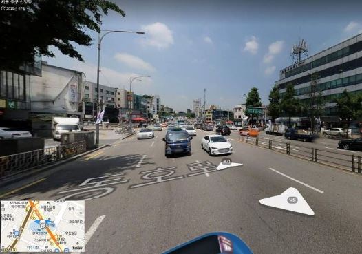 무엇보다 현실 오프라인지도에 비하여 daum 지도 앱이 좋다고 생각되는게 바로 로드뷰, 스카이뷰 등의 기능이 있다는 점인데요. 실제 사진을 기반으로 지정한 위치에 따른 정보를 볼 수 있어서 길찾기에 정말 많은 도움이 됩니다. 사진은 360도로 돌릴 수 있고 이동을 통해서 주변환경도 볼 수 있네요. 지리에 약하신 분들 국내 지형을 쉽게 볼 수 있는 다음 지도 적극적으로 이용해보세요.