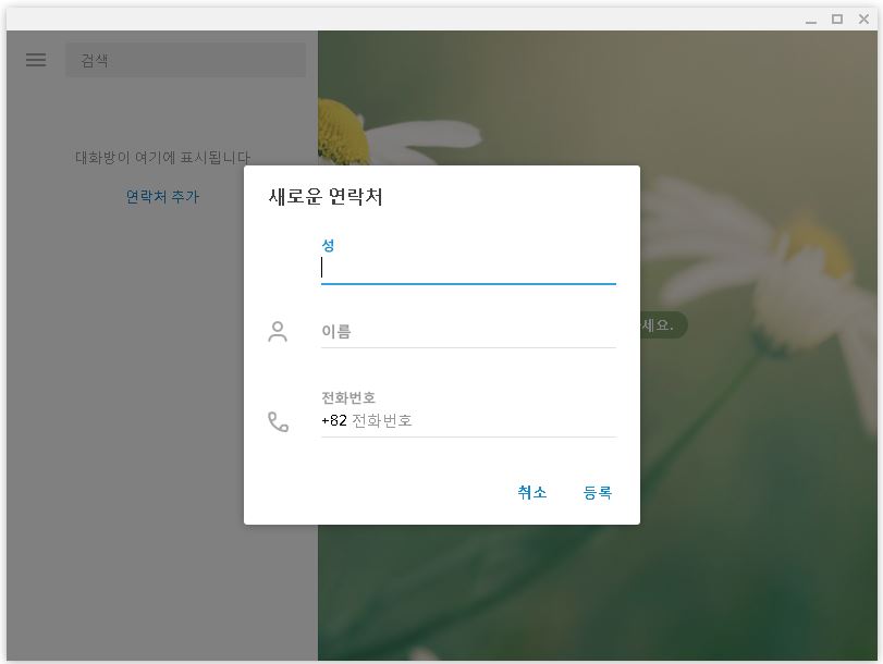 인증과정에서 발송된 코드는 문자로 날아오며 일정 시간내에 입력을 하지 않으면 확인차로 전화가 오게 됩니다. 그리고 이제 텔레그램 pc버전에서 인증이 마쳐지면 이름을 넣어주시고 회원가입을 마쳐주세요.