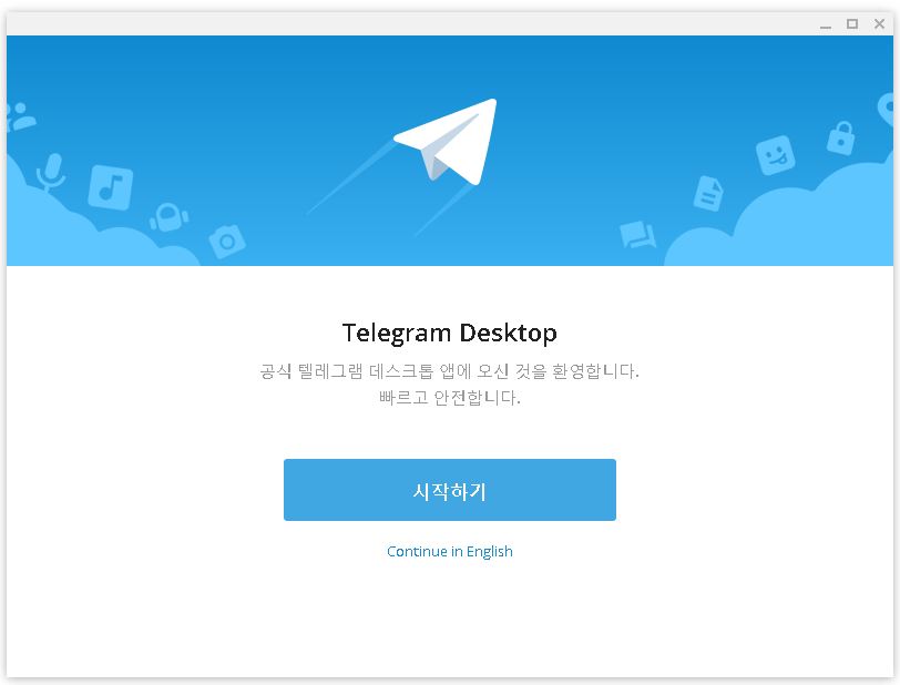 우선은 텔레그램 pc버전을 영문에 한국어로 바꾸어줄 필요가 있는데요. 실행 후 나오는 화면에 보시면 바로 한국어로 바꾸는 항목을 확인하실 수 있습니다.