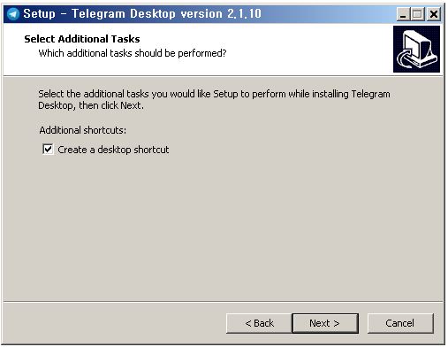 다음으로 텔레그램 pc버전 다운로드 설치마법사에서는 설치경로를 지정하시고 시작메뉴와 바탕화면에 아이콘 만들기만 잘 확인하시면 마치실 수 있습니다.