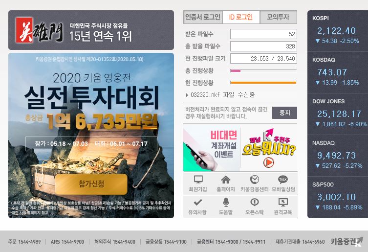 수수료가 비교적 저렴한 편이고 다양한 이벤트를 할 뿐아니라 홈트레이딩 시스템이 편리하여 개인투자자들은 키움증권을 많이 이용을 하는데요. 그 동안은 개인들이 주식에 가지는 관심이 크지는 않았지만 코로나19로 국내증시가 무너지자 저점이라고 생각하고 많은 분들이 투자를 하기 시작하였습니다.