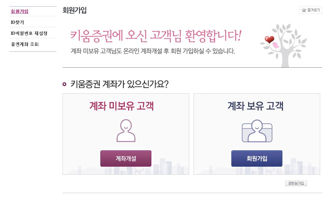 그 다음에는 회원가입을 통하여 계정이 요구되는데요. 키움증권 홈페이지인 www.kiwoom.com에서 빠르게 진행을 해보도록 하세요. 물론 모바일에서도 하실 수는 있습니다.