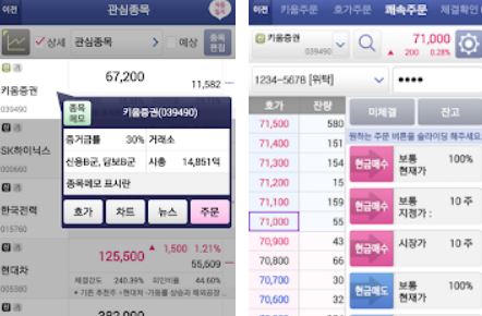 모바일에서 사용되어지는 영웅문s 역시 쉽게 사용이 가능했는데요. 키움증권 홈페이지가 아닌 스토어에서 받으시고 마찬가지로 로그인을 하시면 쉽게 키움증권을 통해 거래가 진행이 되었습니다.