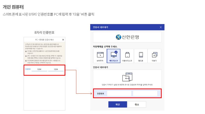 스마트폰의 신한 쏠 어플리케이션과 신한은행 공인인증센터를 잘 활용하셔서 PC의 인증서를 휴대폰에 복사를 하시면 된다고 하네요.