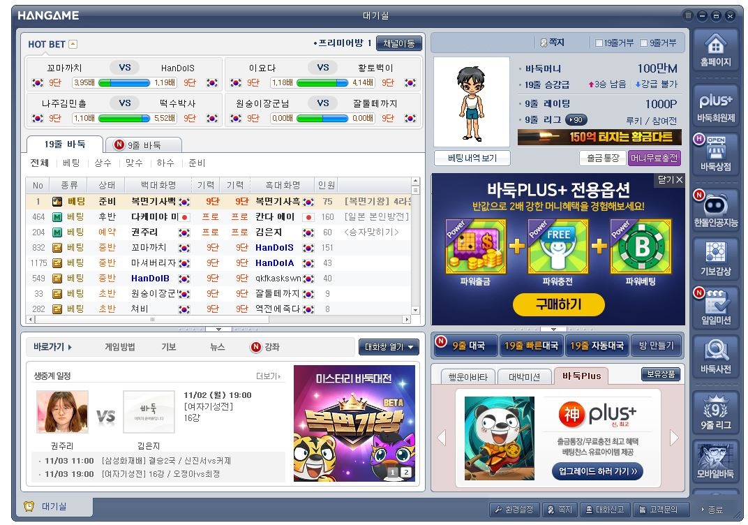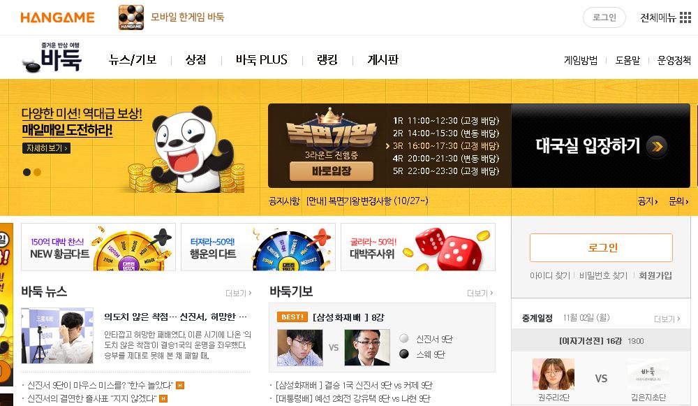 타이젬, 사이버오로, 넷마블 등에서 서비스를 하는 것과 마찬가지로 NHN엔터테인먼트의 한게임에서는 인터넷 바둑을 지원하고 있습니다. 주로 아마추어들이 활동을 하기 때문에 편한 마음으로 접속이 가능한데요.