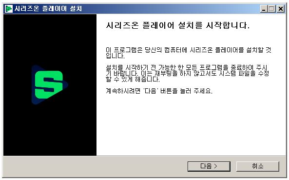 받으신 시리즈온 플레이어는 설치파일 마법사를 통하여 깔아주시면 됩니다. 과정이 모두 마치신 후에는 실행하여 사용을 하시면 되는데요.