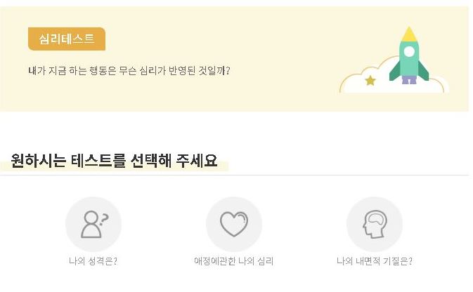 퓨전운세로써 별자리, 띠별로도 운세를 보실 수 있구요. 그 외에도 꿈해몽이나 심리테스트 같은 요소도 있어서 이를 활용할 수도 있습니다.