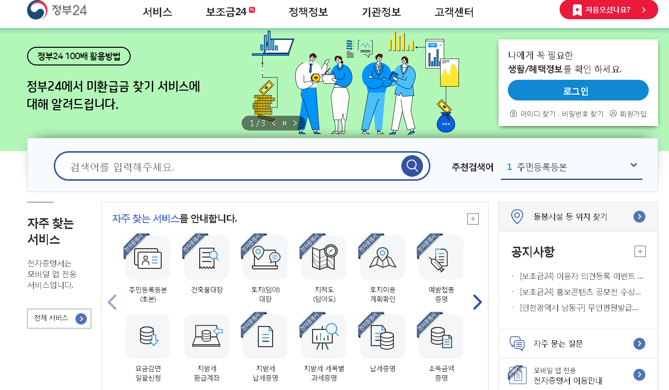 정부24시 홈페이지