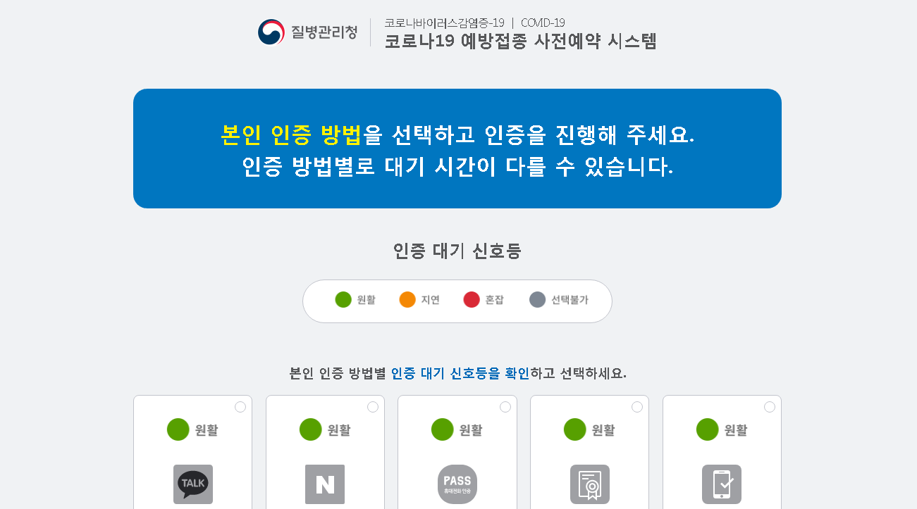 코로나19 예방접종 예약하기 (누리집 ncvr.kdca.go.kr)