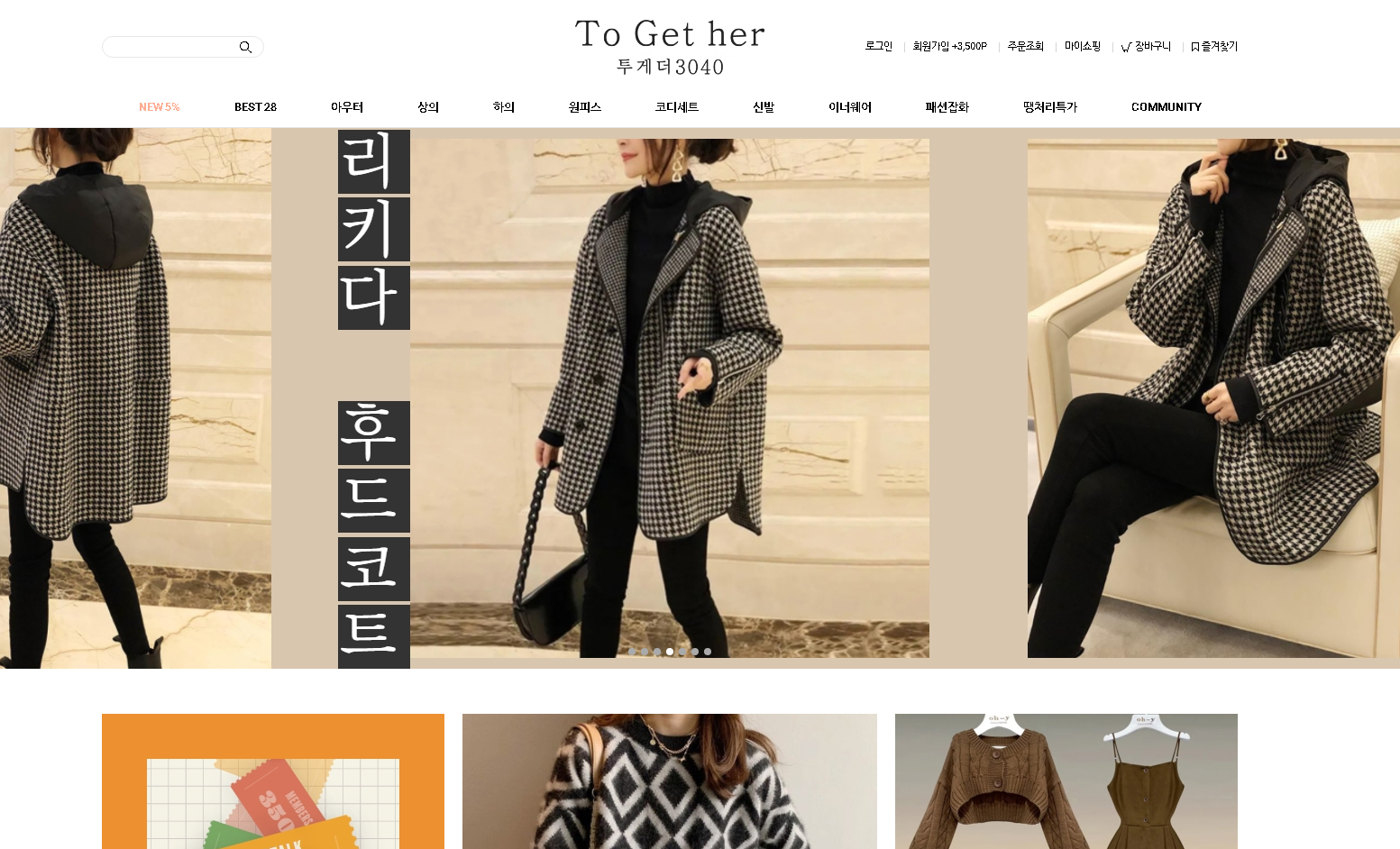 여성의류 전문 쇼핑몰 투게더3040을 이용하시는 분들이 많다고 합니다. 온라인 쇼핑으로써 옷을 찻고 계시는 분들은 방문을 하시고 즐거운 쇼핑해보시기 바랍니다.