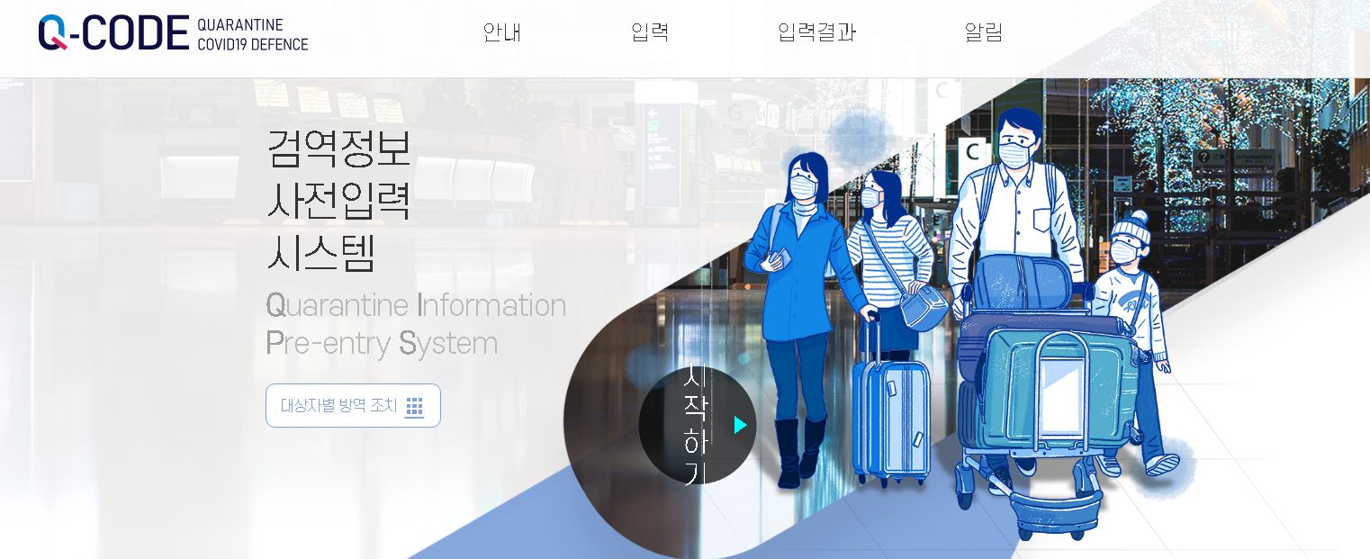 대한민국에 입국 할 때에 소요되는 감역조사 시간을 단축시키기 위하여 질병관리청은 검역정보 사전입력시스템을 구축하였습니다. 해당시스템에 입력한 검역 정보는 QR코드에 암호화 되어 저장이 되어지며, 항공기 탑승시 항공사 직원과 입국검역시 검역관에게 제시가 되어야 합니다.
