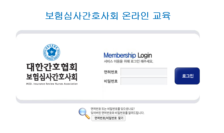 대한간호협회 보험심사간호사회에서 서비스를 지원하고 있는 보험심사간호사회 온라인 교육 입니다. 종사자분들은 로그인하시고 사이버교육 이수 진행해보시기 바랍니다.