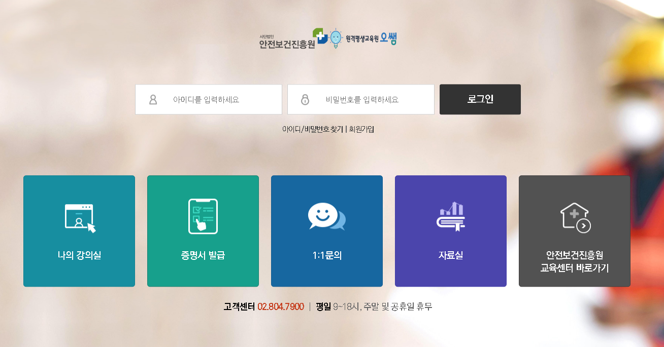 안전보건진흥원에서 운영을 하는 교육센터에서는 온라인으로 접속을 하시고 나의 강의실 이용 및 증명서 발급이 가능합니다.