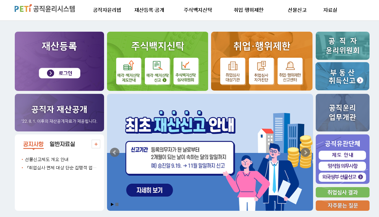 공직자 재산등록시스템 공직윤리 (www.peti.go.kr)카테고리 없음 2022. 8. 5. 12:22