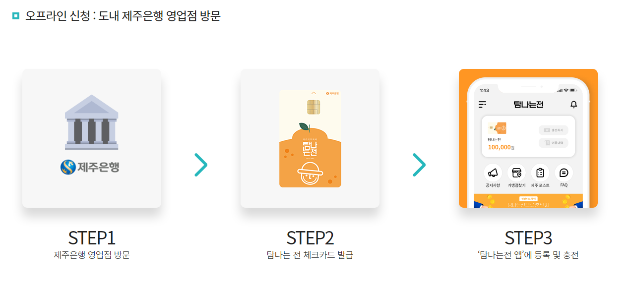 오프라인으로 신청은 도내 제주은행을 방문하셔야 한다고 한다. 그러면 은행원을 통하여 자세한 사항을 알아볼 수 있을 것이다.