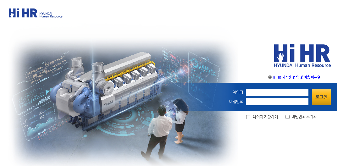 hihr 시스템은 기본적으로 현대중공업 임직원만 이용이 가능하다고 하구요. 이용을 위해서는 사번과 비밀번호는 꼭 기억해 두시기 바랍니다. 이외에 문의는 인사부로 문의를 해보시기 바랍니다.