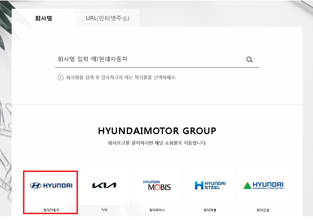 현대자동차 뿐만아니라 기아, 현대모비스, 현대제철, 현대건설, 현대로템 등 계열사들의 복지몰 역시 운영이 되어지고 있으니 참고하시길 바랍니다.
