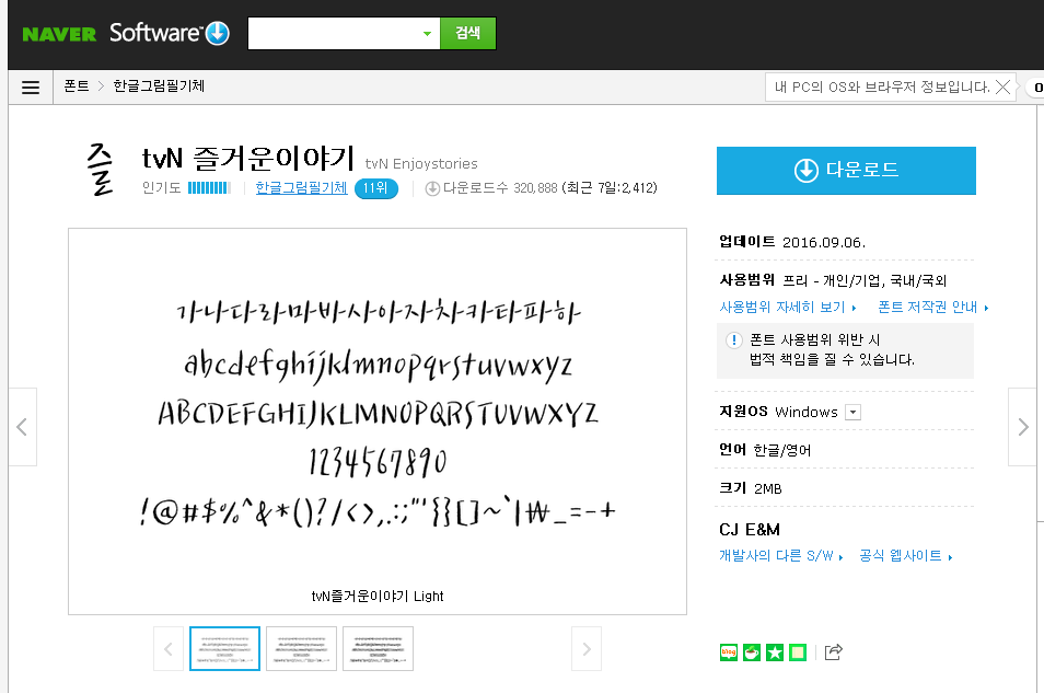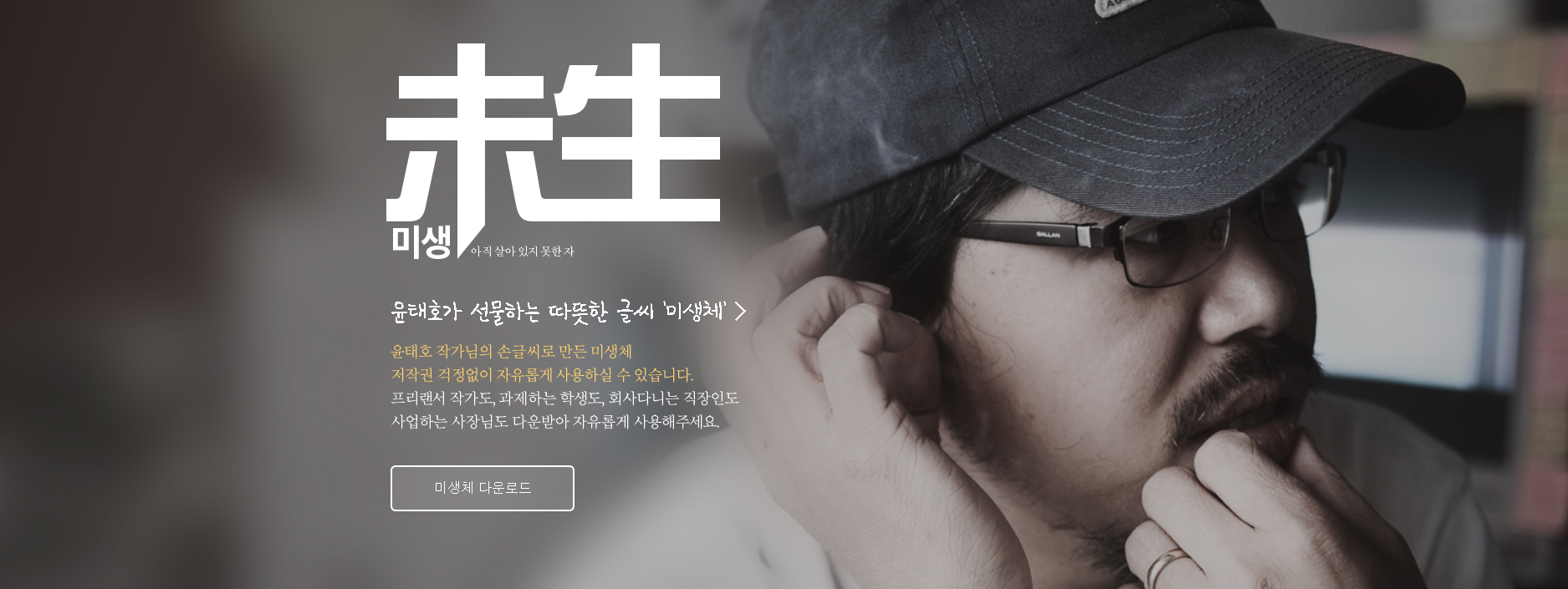 손글씨 무료폰트의 다운을 원한다면 윤태호 작가의 매생체를 받으셔서 이용하시면 좋은데요. 미생체는 윤태호작가의 손글씨로 만든 서체로써 다음웹툰에서 이벤트로 배포를 진행하고 있습니다.