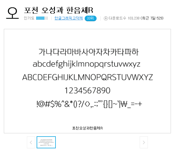 인터넷에서 폰트를 사용할 때는 저작권 문제를 잘 확인하시고 이용하셔야 하는데요. 때문에 무료 폰트를 다운하여 이용하시는게 사실 속편하긴 합니다. 일부 업체에서는 공식적으로 자유롭게 사용가능한 서체를 제공하고 있기에 이를 잘 활용하시면 될 것 같네요.