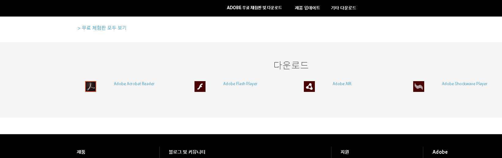 어도비 코리아 사이트에 접속을 하시구요. 지원탭에서 다운로드 및 설치 항목에 보시면 Adobe Flash Player 항목이 확인이 됩니다. 이제 어도비 플래시 플레이어 다운로드를 위한 과정이 진행될텐데요.