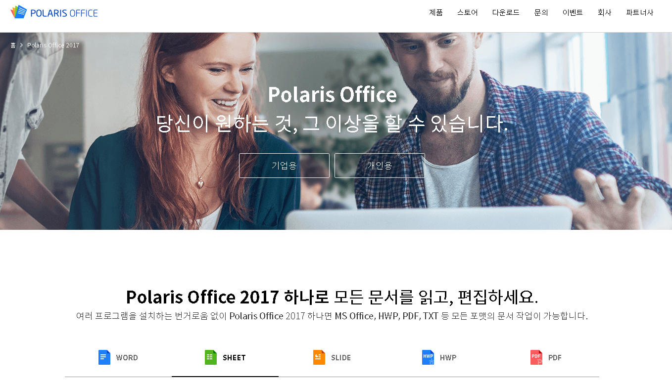 여기에 추가로 만약 뷰어를 포함하고 편집까지 하고 싶다면 폴라리스프로그램을 받으시면 됩니다. 역시 통합문서프로그램이기 때문에 다양한 문서파일을 호환한다는 점이 좋은 것 같네요.