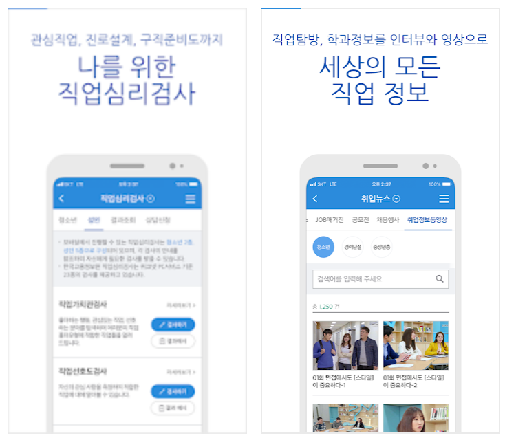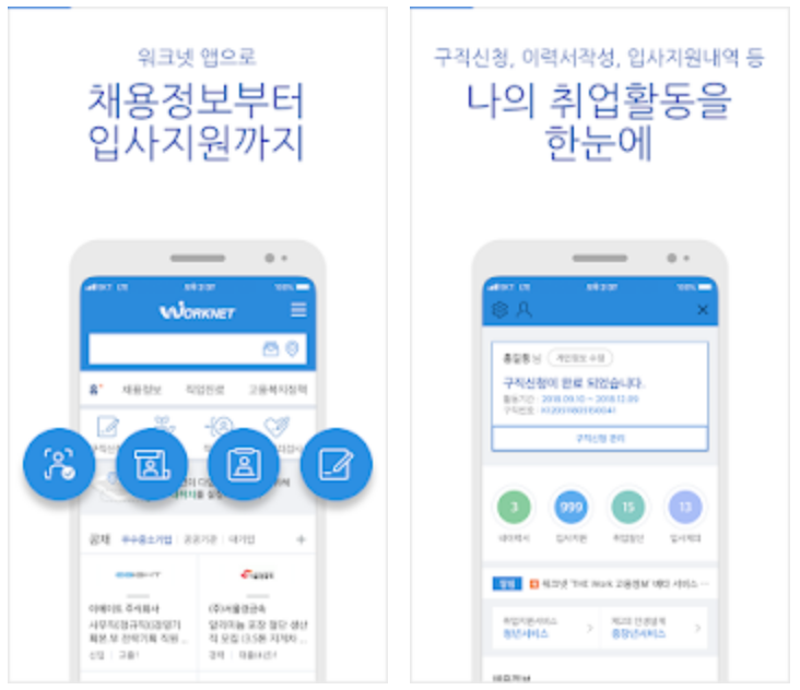 안드로이드와 ios 모두 모바일 버전의 worknet 어플을 지원하고 있구요. 해당 어플리케이션을 다운로드 및 설치하면 쉽게 워크넷 구인구직정보는 물론 심리검사 등 서비스를 홈페이지와 마찬가지로 받으실 수 있습니다.