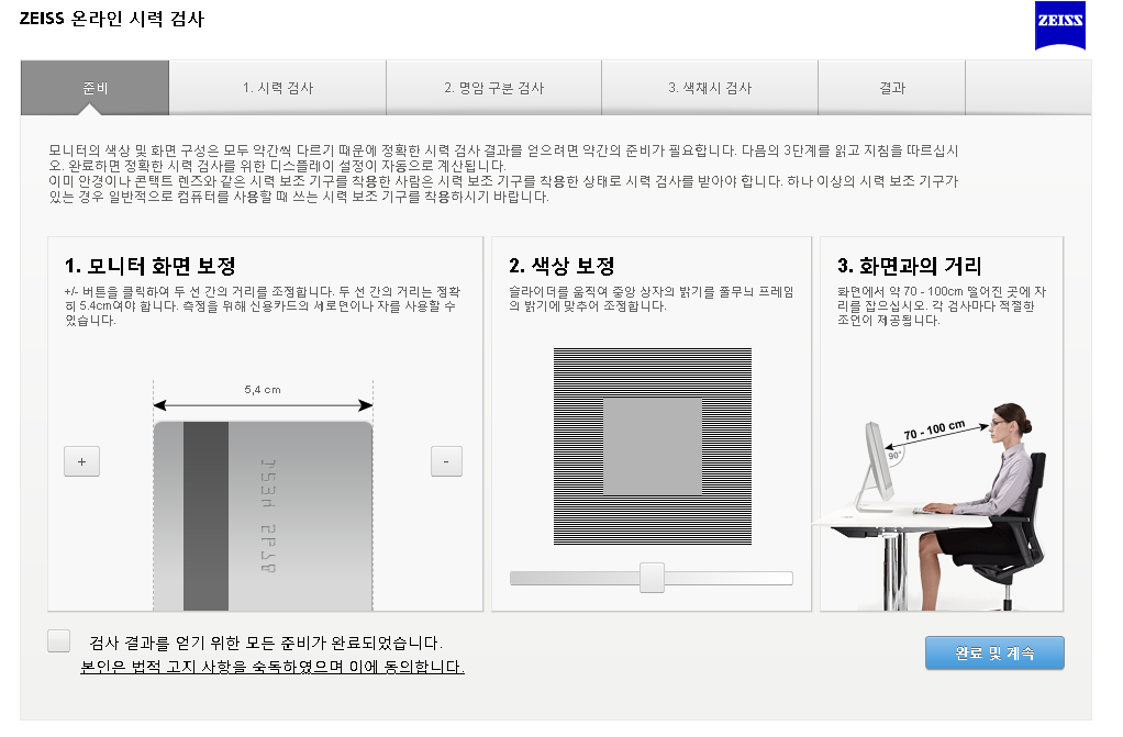 렌즈 관련 사업을 진행하는 ZEISS(자이스) 기업에서도 온라인으로 인터넷 시력검사를 사이트에서 진행하실 수 있는데요. 로그인없이도 간편하게 자세한 검진을 할 수 있어 유용합니다.