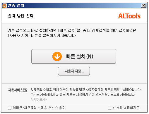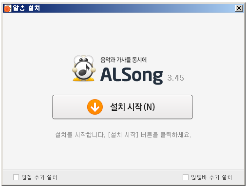 알송 다운로드가 완료되셨으면 설치마법사를 이용하여 이 음악플레이어를 pc에 인스톨하시면 됩니다. 중간과정에서 알집, 알툴바 추가 설치가 요구되구요.