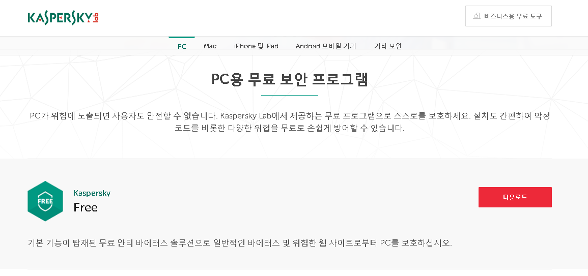 15년도에 베타서비스가 제공되기 시작했으며 한국에는 17년도부터 본격적으로 Kaspersky free로 한글판으로 서비스가 제공되기 시작하였는데요.